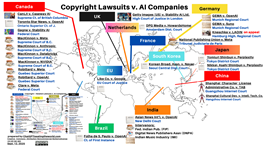 그림 3. World Map of All Copyright Suits v. AI co. (Sept. 12, 2025) 74 total [chatgptiseatingtheworld.com]